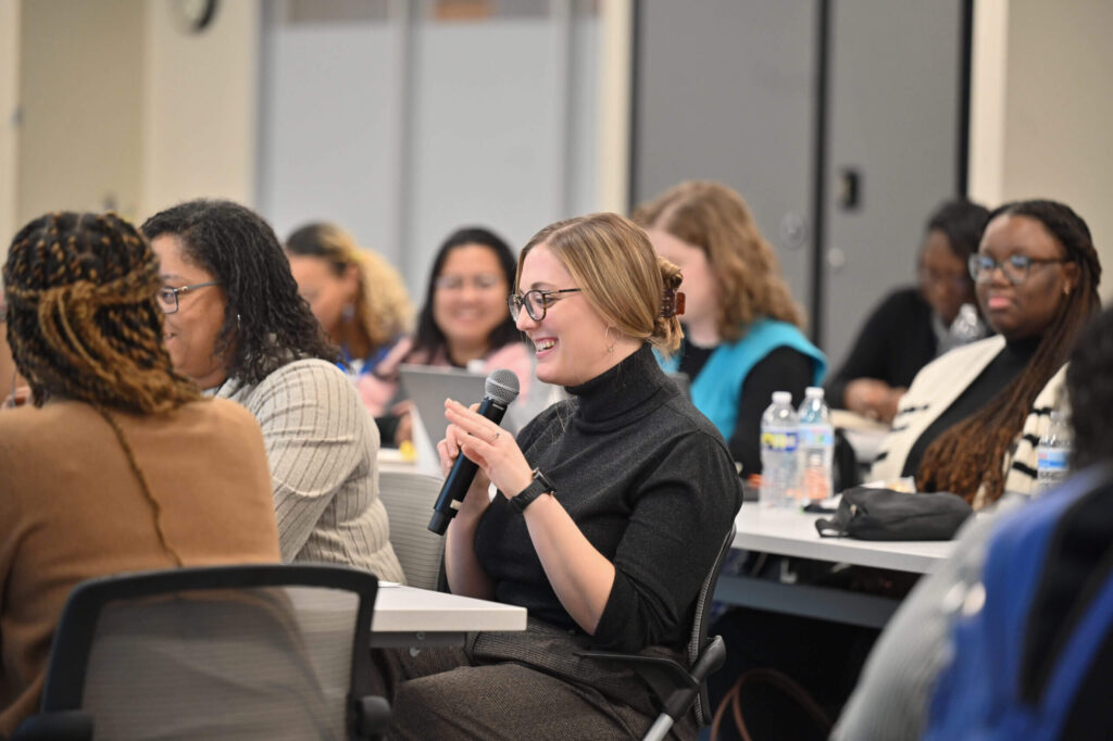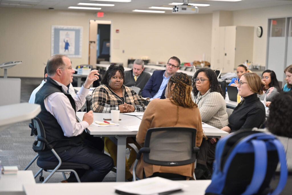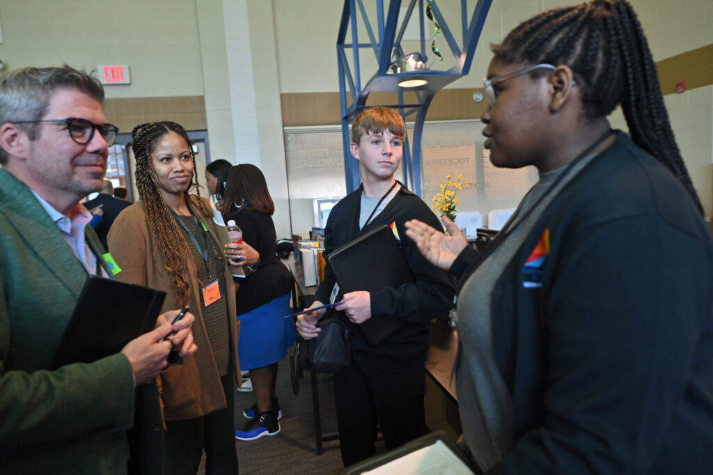 Throughout the event, visiting district teams explored APS’ wall-to-wall career academies model, exchanging insights, lessons learned, and feedback crucial to their system transformation efforts. The network spent time at the Akron Community Foundation (ACF), learning about the enduring partnership between APS and ACF, which has bolstered middle school transformation efforts and galvanized support from various civic and nonprofit organizations. Diverse panels featuring students, educators, and business partners provided nuanced perspectives on the interconnected relationships underpinning middle school experiences and future readiness. At the Hyre Community Learning Center, student-led tours offered firsthand glimpses into campus life and the profound impact of student-driven initiatives on the Akron community. Stirring student speeches underscored the power of youth agency in addressing community challenges. A comprehensive day of sessions hosted at the University of Akron delved into partnership dynamics between APS and diverse stakeholders, showcasing collaborative efforts to design innovative learning experiences that extend beyond traditional school hours. From forging alliances with corporations and hospitals to nurturing teacher-led ambassador programs, attendees gleaned actionable insights aimed at improving student outcomes and fostering community engagement.