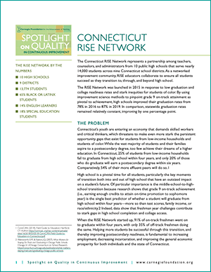 The Connecticut RISE Network is being spotlighted for its work in generating demonstrable improvement of 9th grade on-track achievement and four-year graduation rates for students of color and students from low-income families through the use of networked improvement methods.