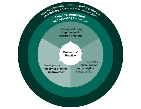 Finally, the outermost layer of the framework–fostering the emergence of culture, norms, and identity consistent with network aims–refers to the characteristics of a network and the context in which it resides that enable the sustained voluntary engagement and discretionary effort of participants. Members join together as a practical scientific community. They share a “common language” (i.e., description of the problem to be solved and working theory of improvement), common measures, and common inquiry protocols and evidence about what they tried and what they learned. Included here is the narrative of participation that motivates this distinctive form of professional collaboration and defines what it means to be a member of a particular NIC and how participants will work together to address their shared problem. While culture, norms, and identity are emergent properties of a NIC, a network initiation team must take strategic action to foster their development.