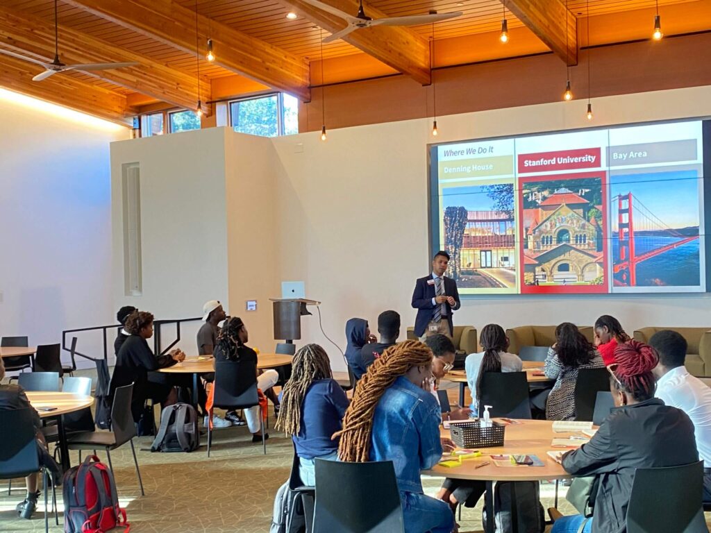 Students continued their hands-on learning by visiting several prominent companies in Silicon Valley, including Stanford’s Flight Lab and Autonomy Laboratory, X-The Moonshot Company, Intel Corporation, Lyft, IDEO, Open AI, Emerson Collective, and Uber HQ. Students also engaged in intimate conversations with influential start-up founders, investors, and other cross-sector social impact innovation leaders who shared key insights for building startup teams, identifying and validating entrepreneurial opportunities, leveraging AI and machine learning for decision-making, understanding and communicating value propositions, fundraising, and more. Legendary entrepreneurial speakers and leaders included: Timnit Gebru, founder of the Distributed AI Research Institute (DAIR) and Black in AI, Steve Cadigan, LinkedIn’s First Chief HR Officer, Astor Teller, Captain of Moonshots, Sheryl Sandberg, former COO of Meta and founder of Lean In and Option B, and Laurene Powell Jobs, founder of the Emerson Collective, businesswoman, and philanthropist—to name a few.