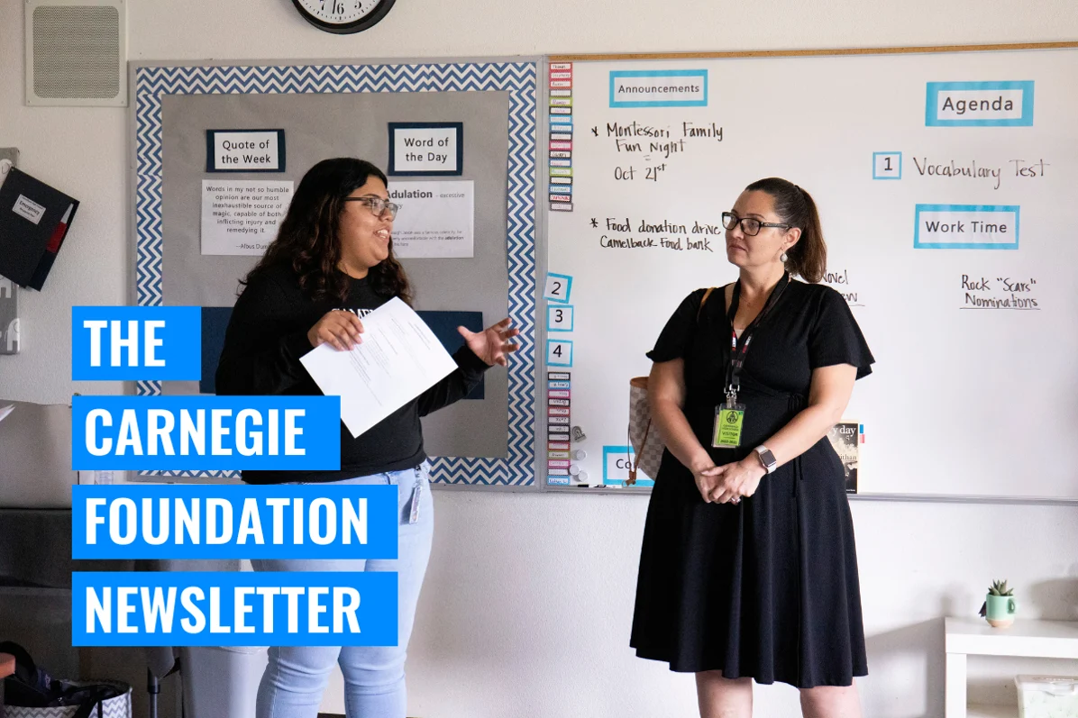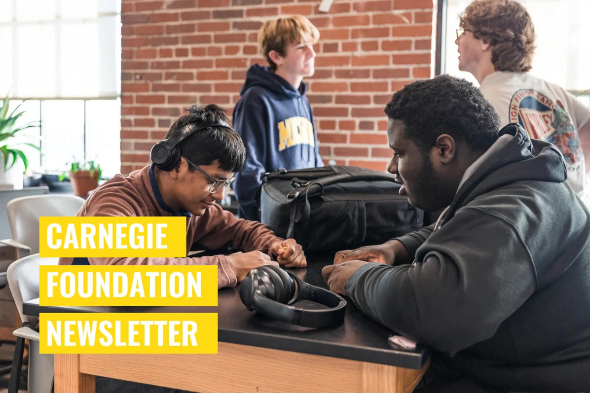 Newsletter Archive 2026 2025 2024 2023 2026 January Building a Skills Genome 2025 December Beyond Binaries: A New Path for Teaching and Learning November The Power of Local Partnership October The Demand for Experiential Civics September Turning the Tide: Bold High School Transformation in Action August Beyond the Cave: Measuring Performance, Not Prestige, in Higher Ed July A National Call to Action: Carnegie R&D Agenda June Mainstreaming Innovation May The Power of Postsecondary Educators April A New Social Contract for Higher Education March An Inflection Point for Education February Reimagining Assessment: Real-Time Insights, Real-World Skills January New year, a new chapter in education 2024 December We’re All Poets November The Power of Competency-Based Education October Sometimes Repeating History Matters September Scaling Educational Innovation August State Leaders Turbocharge High School Transformation July Unlocking Career Opportunities June End of School Year Gratitude May A New Architecture for Education April The Power of States March Innovating Postsecondary February Measuring What Matters January Promises for a Remarkable Year Ahead 2023 December With Gratitude November Stay Connected to Our Work