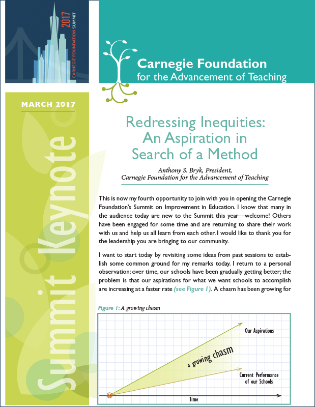 “Redressing Inequities: An Aspiration in Search of a Method,” at the 2017 Summit on Improvement in Education.