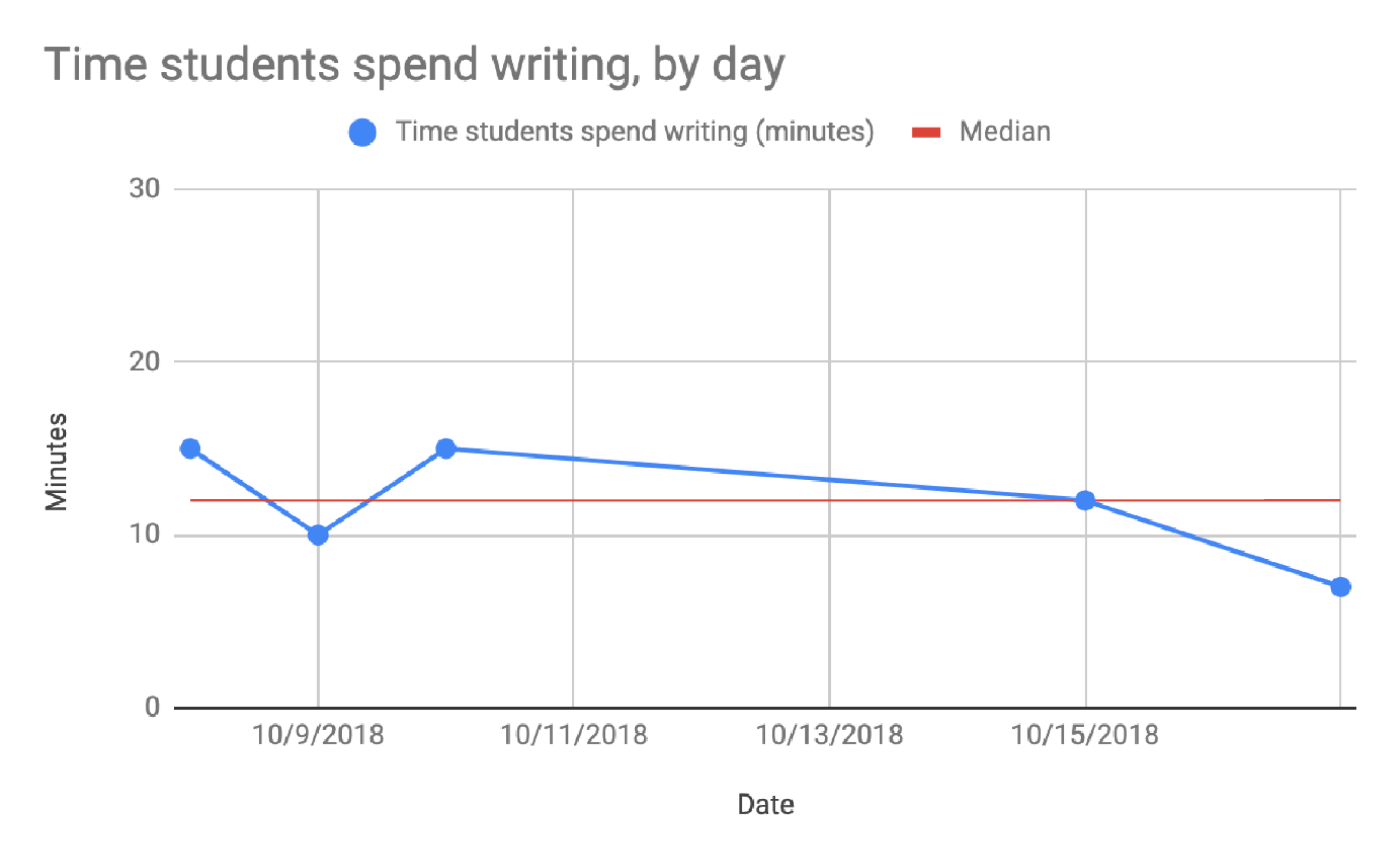 The team prepared a Google spreadsheet template that teachers could use to record the number of minutes students spend in independent writing time as well as the total number of minutes for the writing lesson.