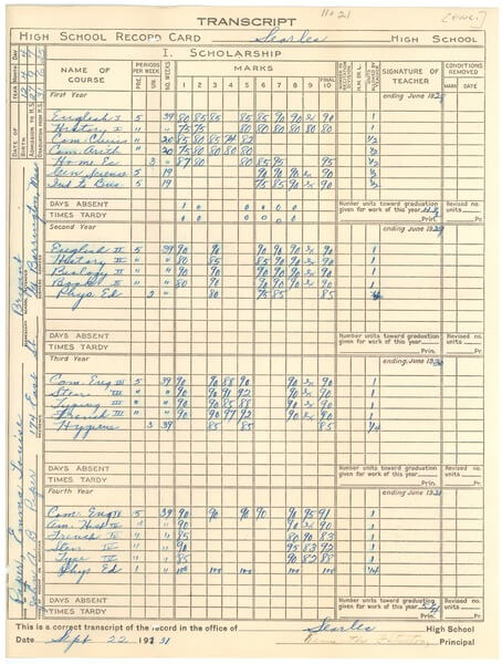 Decades apart yet strikingly similar, these transcripts from 1931 and 2020 reveal a century of unchanged format in measuring student success.